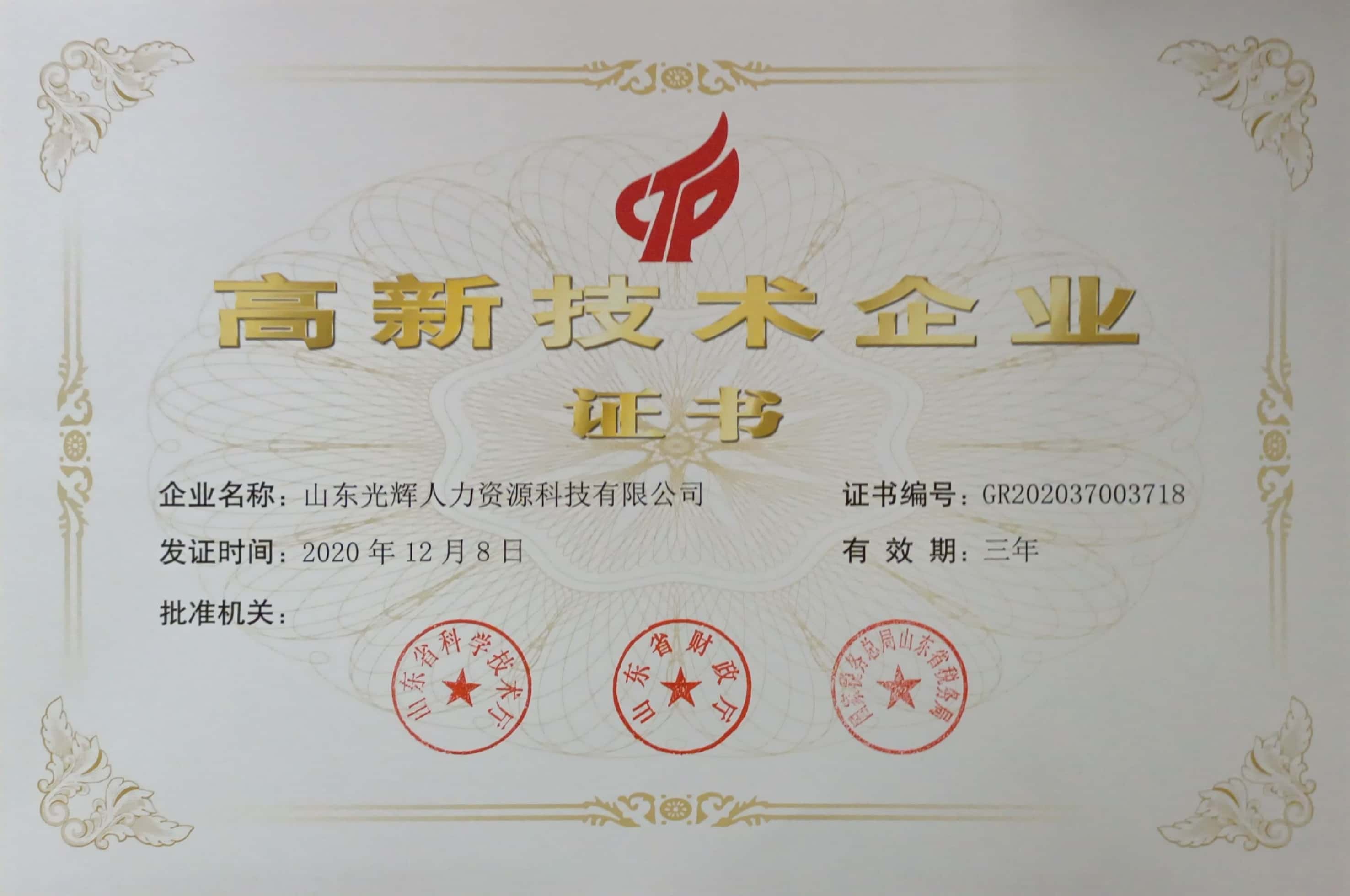 【喜報(bào)】山東光輝人力資源科技有限公司通過高企認(rèn)定